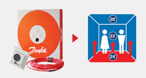 Danfoss DEVI 智慧型地暖系統(tǒng)將電纜舖設(shè)於地面下, 一方面透過(guò)電纜導(dǎo)熱讓地面溫度上升, 地?zé)犭娎|同時(shí)和裝置在墻面上的「電子溫控器」連線感應(yīng), 進(jìn)行溫度的自動(dòng)調(diào)節(jié)及開關(guān)控制。